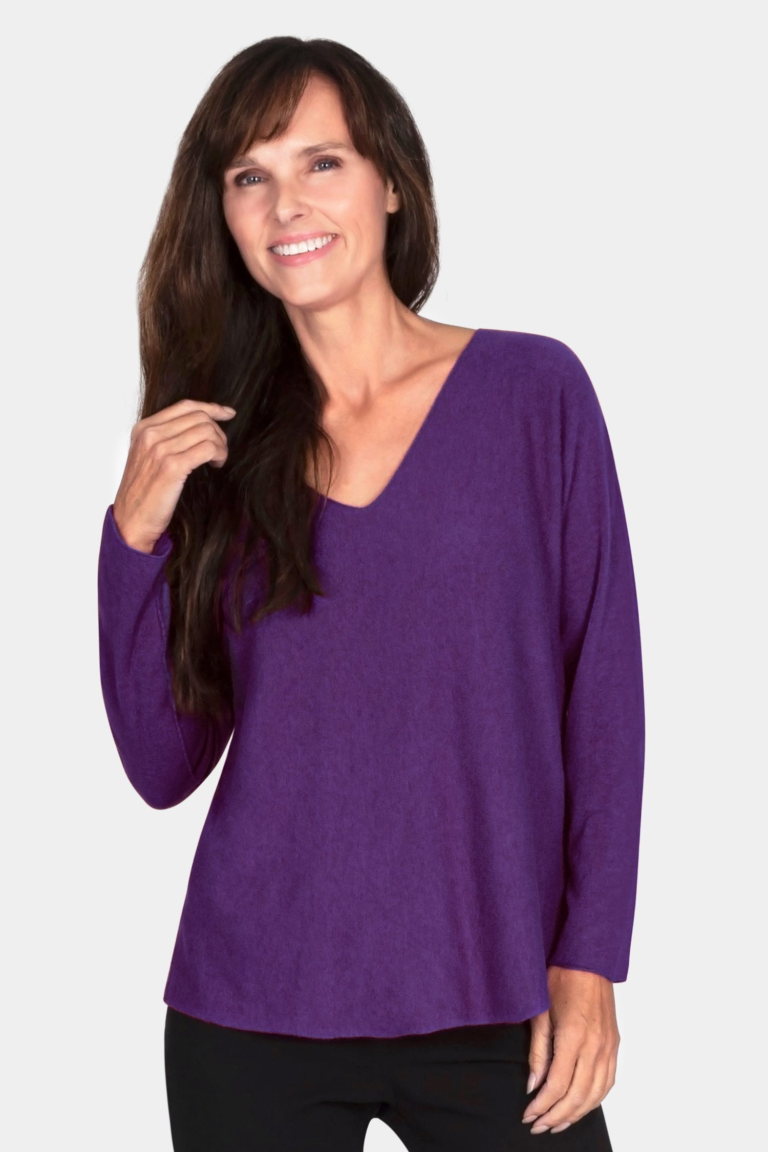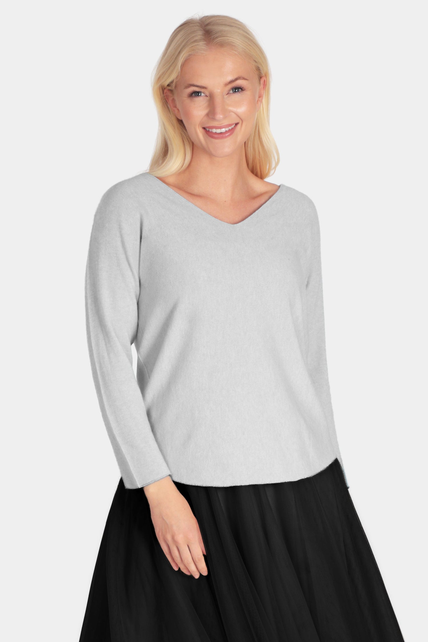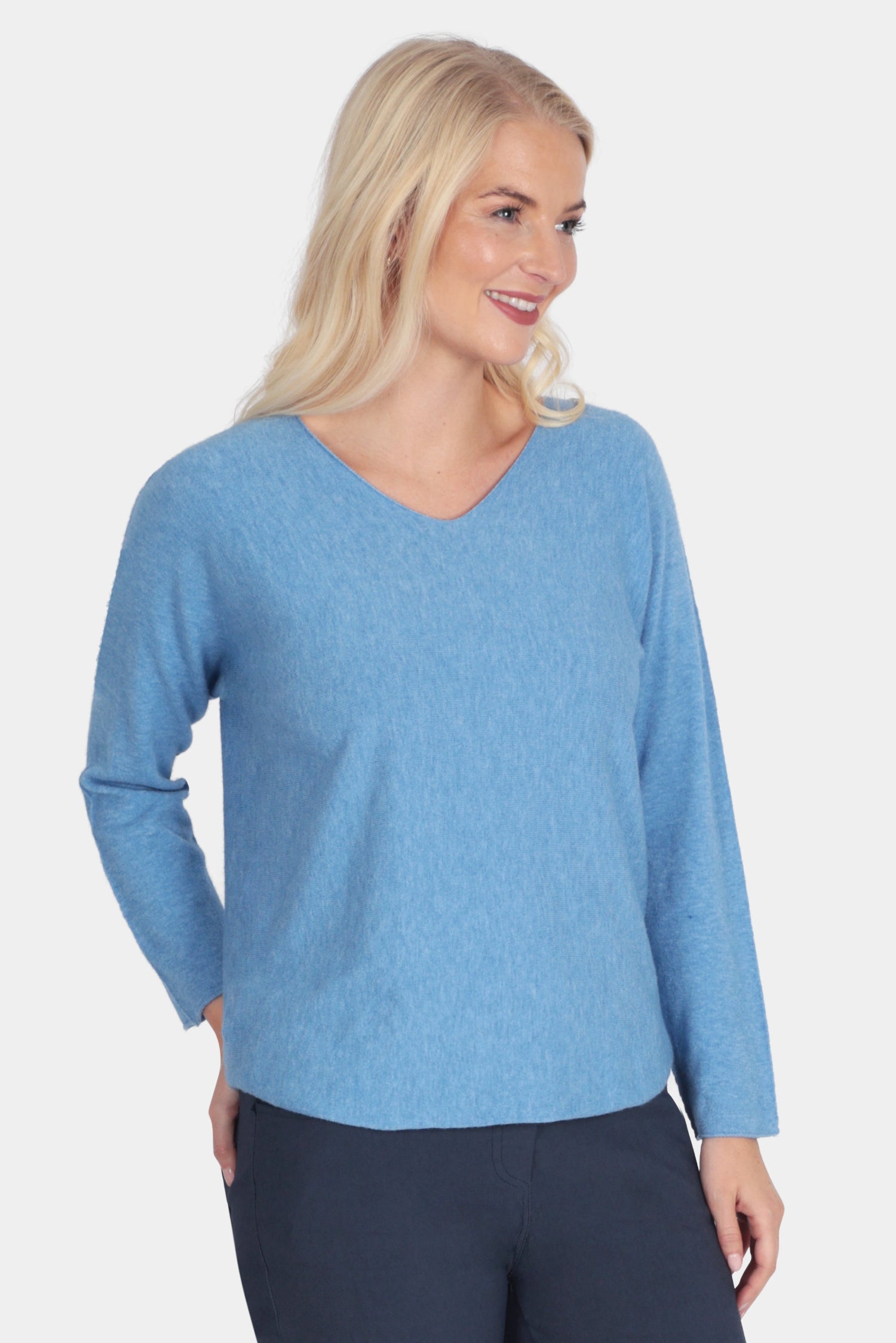 A lightweight everyday jumper in our finer Cloud One yarn. Designed with a feminine V-neckline and a neat, flattering fit through the body, this women’s knitwear style is easy to wear solo or as a soft under layer beneath jackets and cardigans.