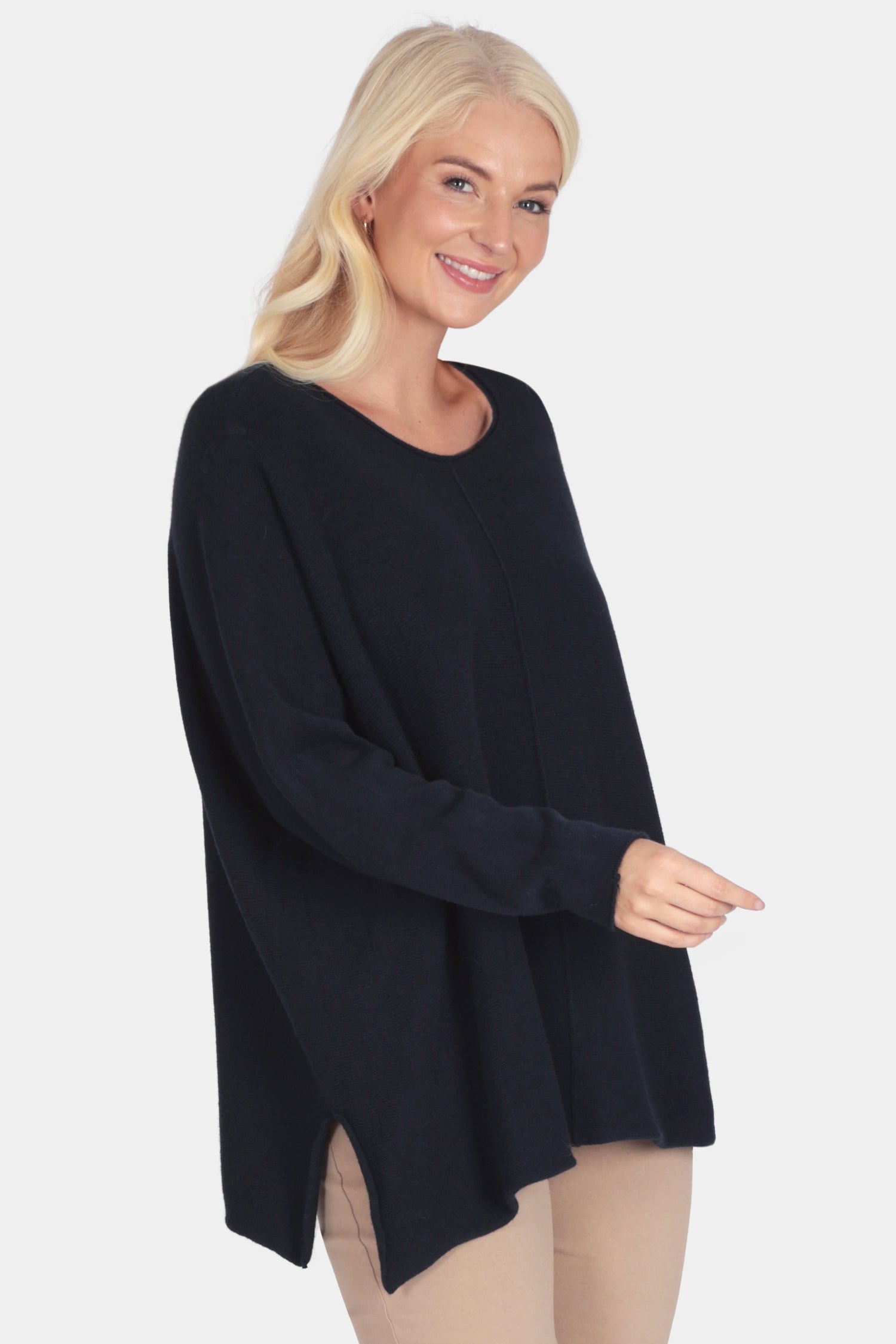 Crafted in our heavier Cloud Two yarn, this oversize jumper is designed for easy layering and all-day comfort. Featuring a relaxed drape, dropped shoulders and a subtle front seam detail, it’s finished with a stepped hem that falls longer at the back. A simple, versatile knit that pairs effortlessly with trousers or denim.