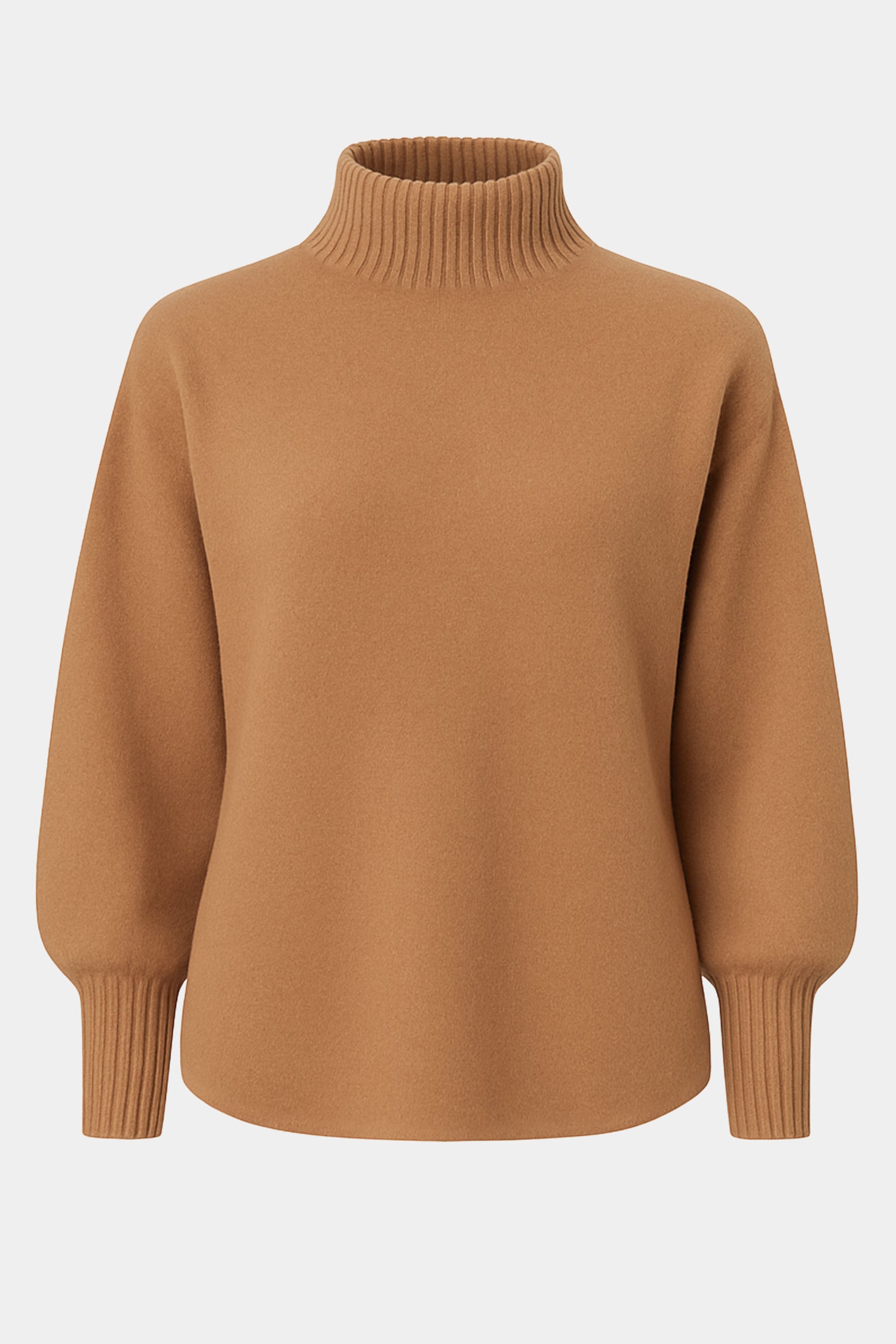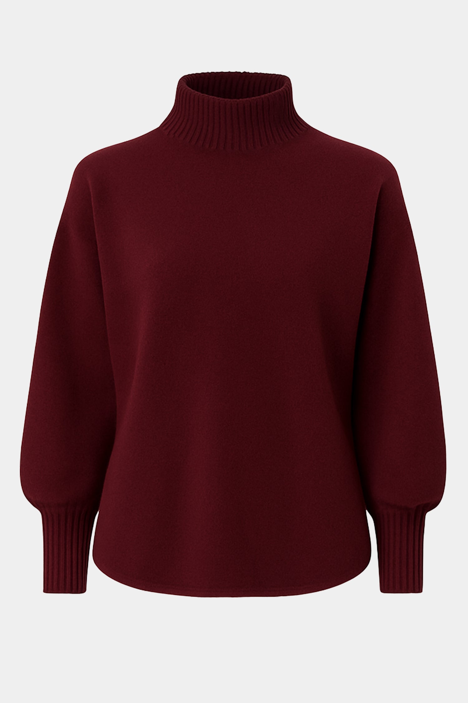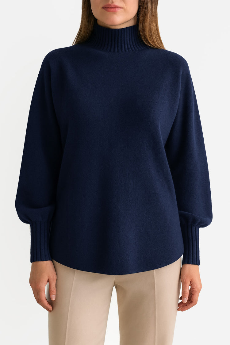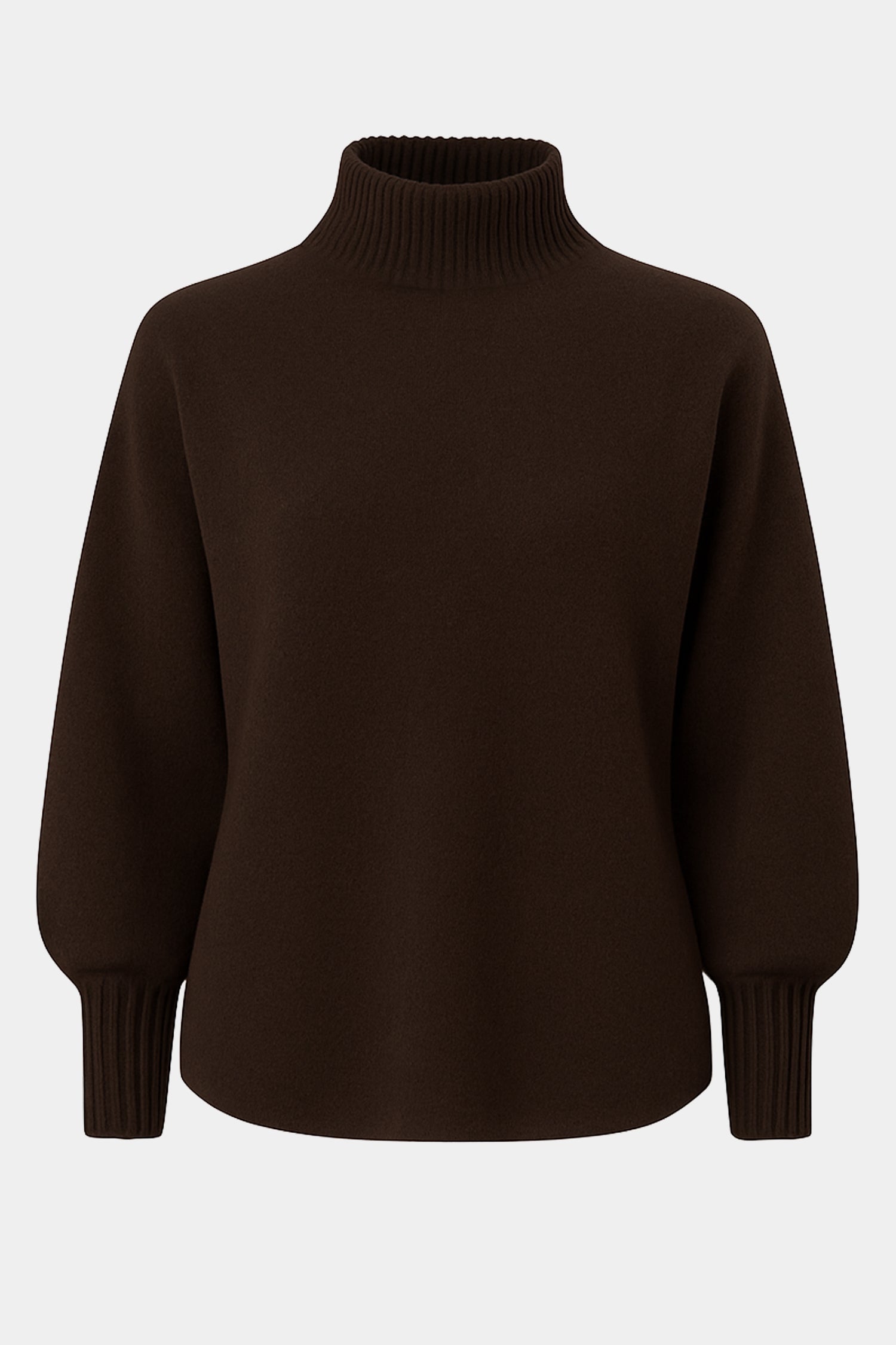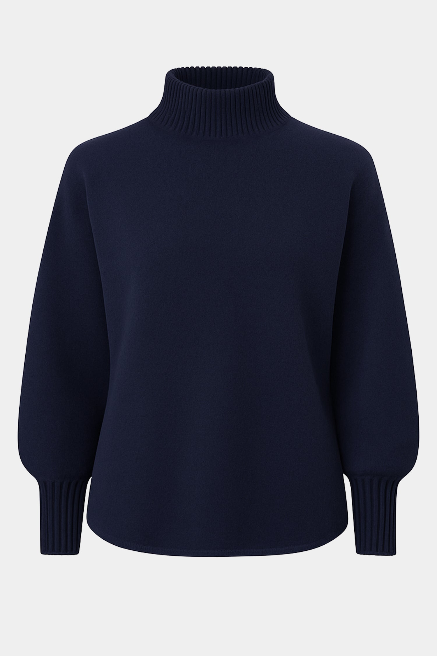 A beautifully soft knit jumper from our elevated Cloud Two collection — plush, warm and comfortably soft, with a high neck that sits neatly without folding or rolling. Featuring a relaxed shape and curved hem for a flattering fit over trousers or skirts. Ribbed sleeves taper into a long cuff to add shape and balance to the gently ballooned sleeve.