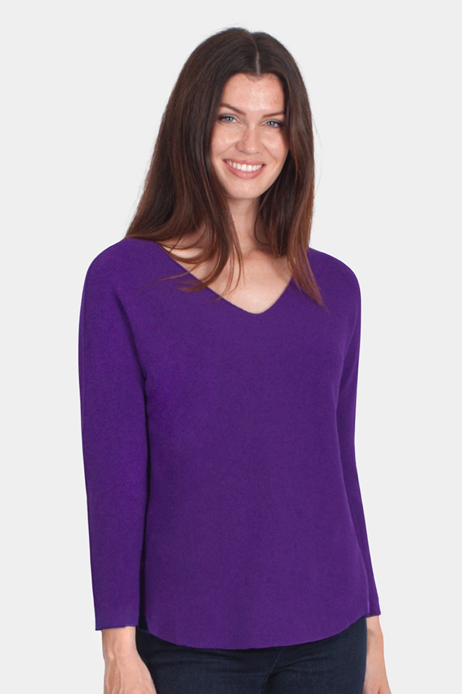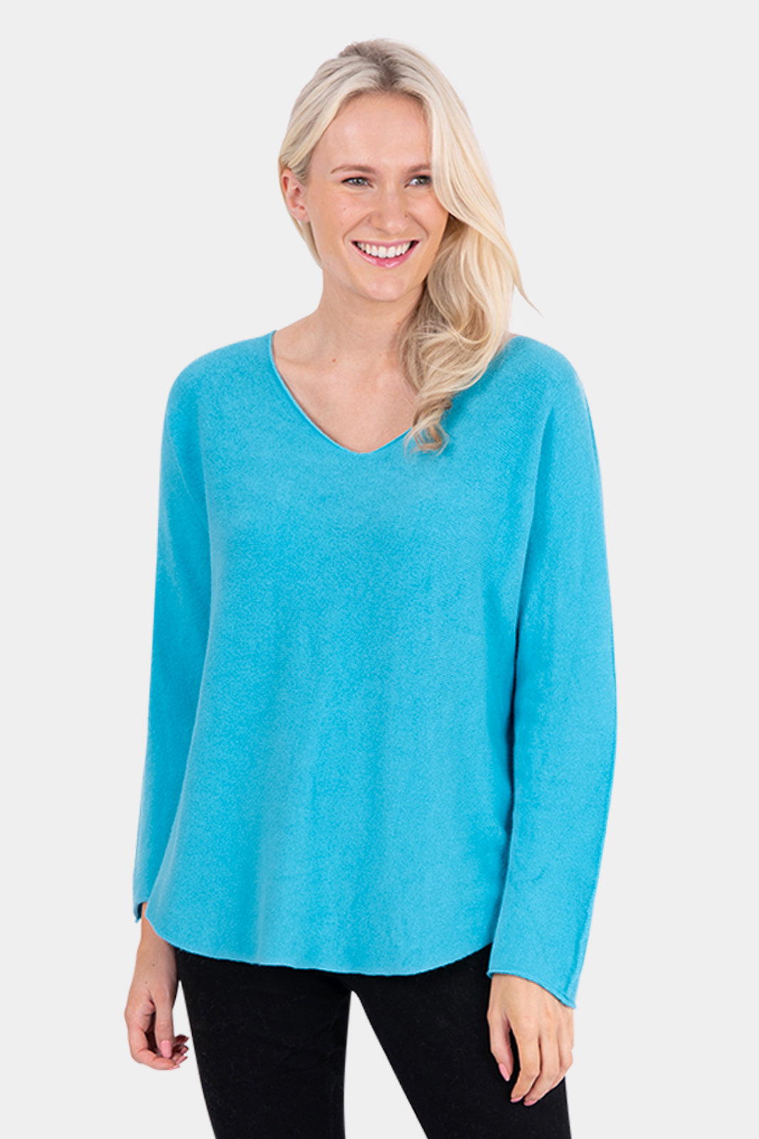 A classic best-selling jumper in our Cloud Knitwear yarn. Designed with a feminine V-neck, gentle bias at the waist, and a dipped front and back hem for a flattering silhouette. Breathable and versatile, it’s ideal for layering or wearing solo across the seasons.