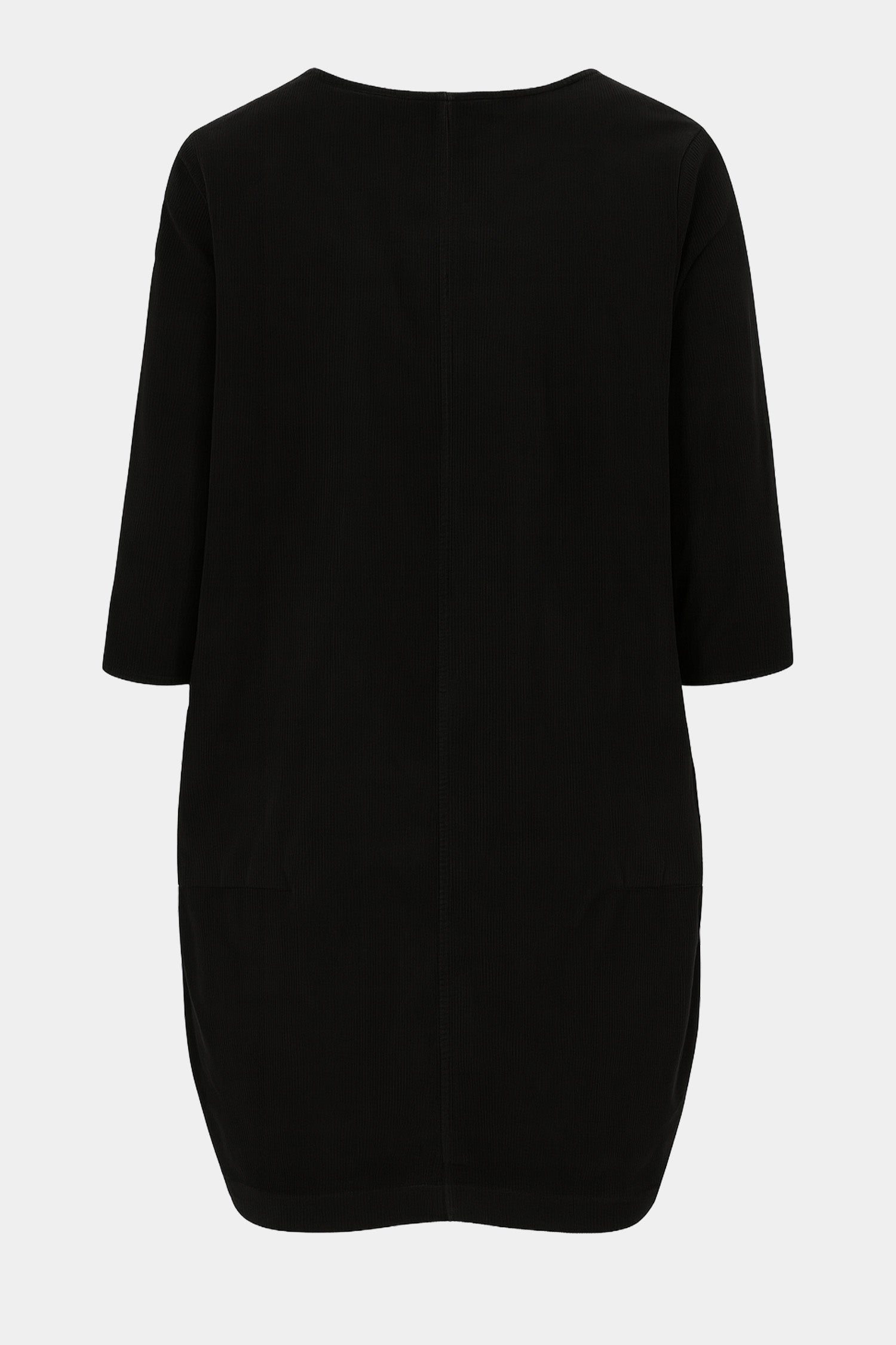 A relaxed, easy cotton corduroy dress with a soft drape and a simple round neckline. Cut in a gentle cocoon silhouette, it falls loosely over the body without clinging. The sleeves can be worn as-is or turned back, and the button detailing at the hem adds a clean, crafted finish.