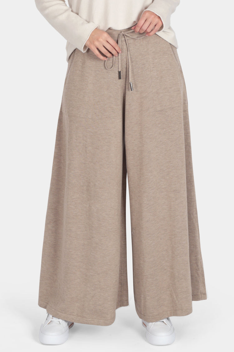 Relaxed and stylish, these palazzo trousers are knitted in a soft, drapey yarn that moves beautifully with every step. Designed with a wide leg cut for comfort, they feature an elasticated drawstring waist and practical side pockets for an effortless everyday feel. Can be dressed up with smart knitwear or down with relaxed layers. A staple piece you’ll want to wear at home, for travel, or out and about. Comfort and style.