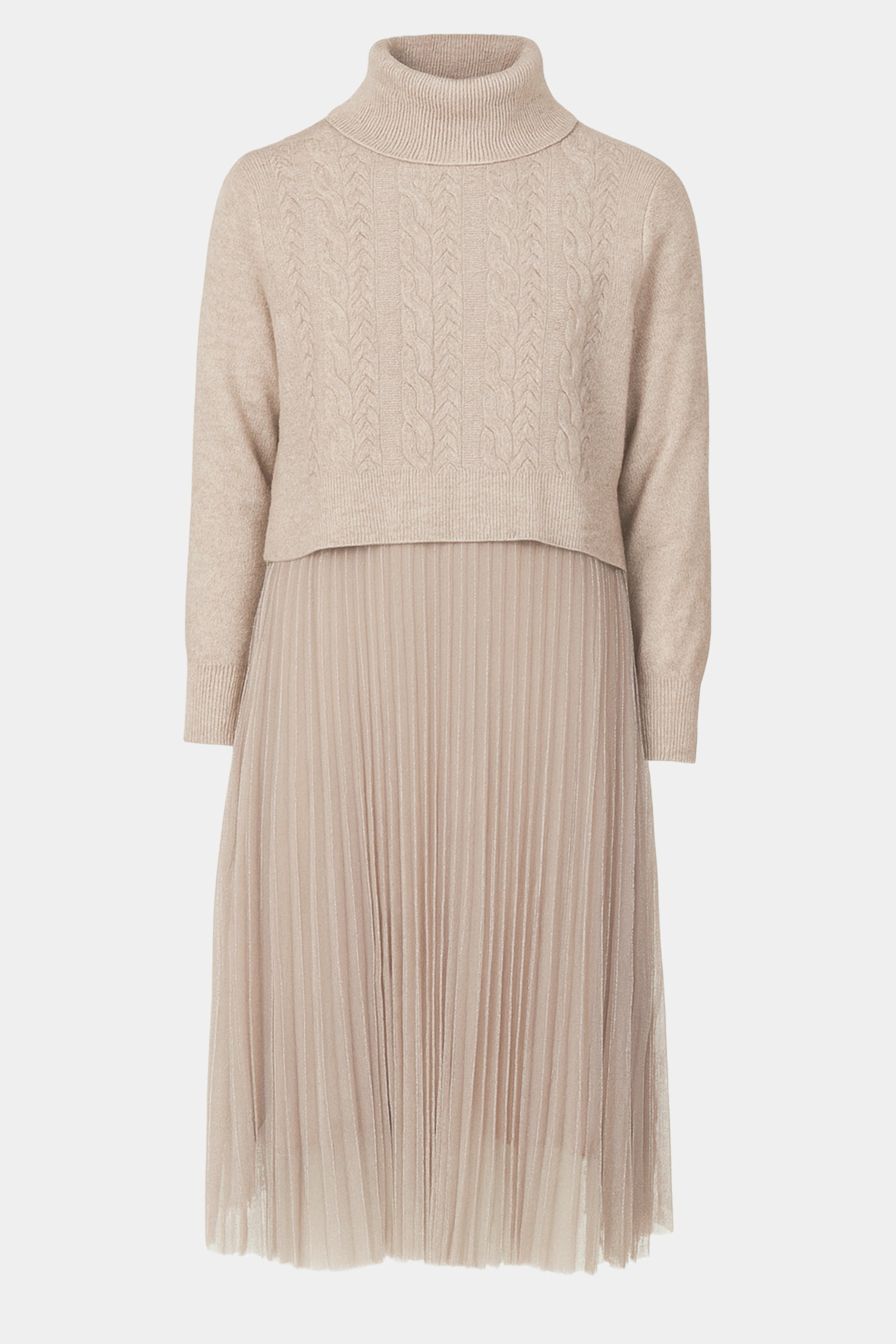 Our two in one dress is an effortless throw on and go solution. Featuring a relaxed crop fit over jumper with a roll neck and a lightweight pleat polka dot detail skirt underdress. Looks great dressed up or down. effortless style...