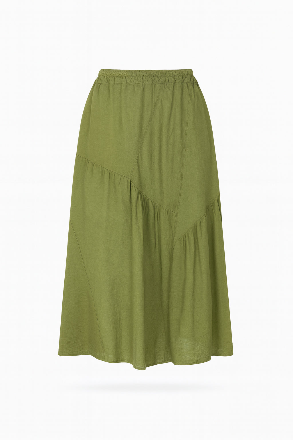 A beautiful and easy-to-wear linen skirt with a unique design. It features two side pockets, angled seams and a gathered section that creates a lovely, flowing shape. For all-day comfort, it has a simple pull-on elasticated waist. The versatile midi-maxi length makes it a perfect staple for relaxed, everyday style.