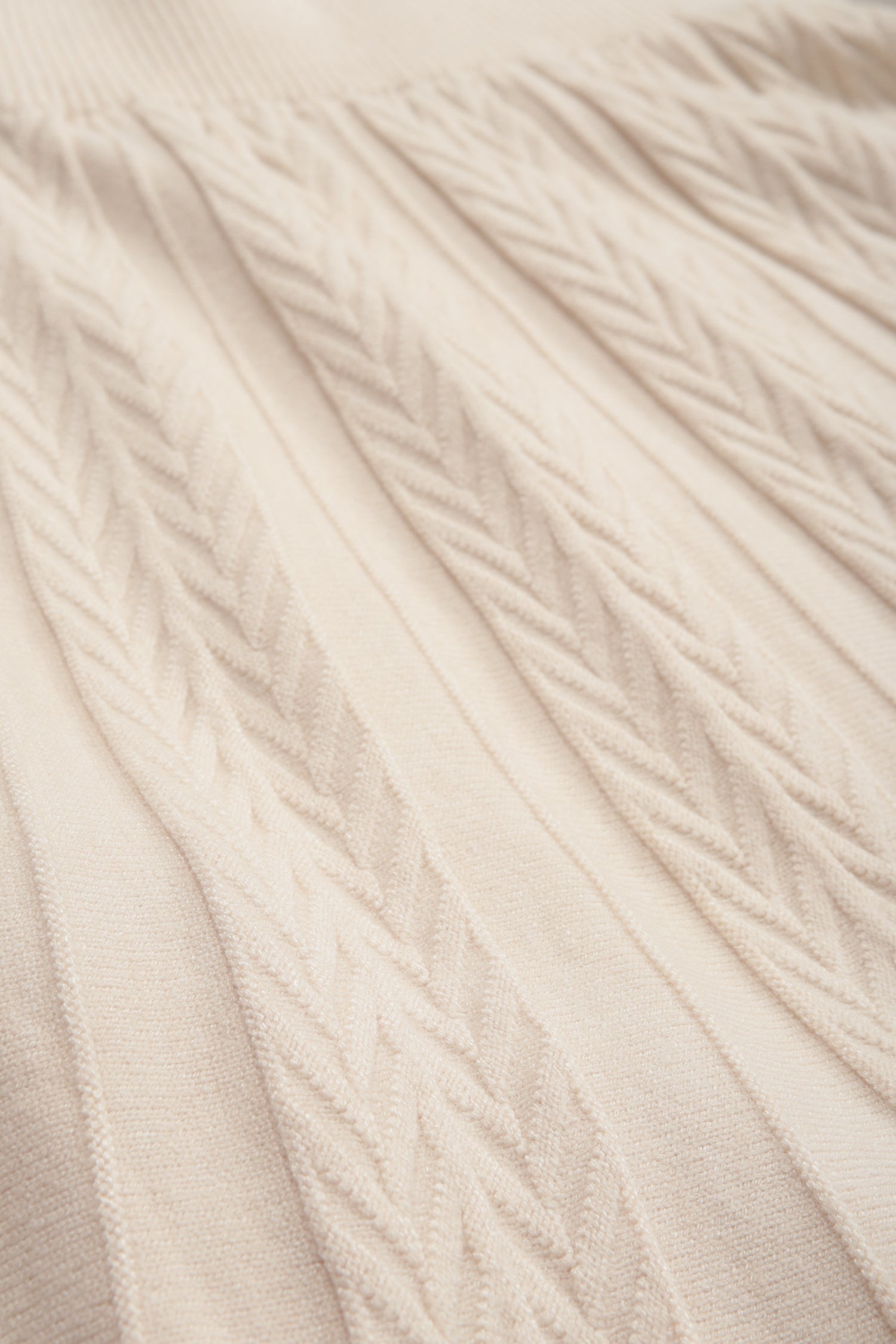 A soft knitted midi skirt with a subtle cable-pleat texture throughout. The A-line shape gives gentle movement without bulk. Finished with a wide ribbed waistband for a comfortable fit. An easy everyday style that pairs well with simple knits and boots.